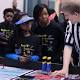 Southern Maryland Online Naval Surface Warfare Center Dahlgren Division (NSWCDD) engineer Serita Seright, 2nd from right, and a student, listen to a judge explain the FIRST LEGO League (FLL) competition rules and point system at Maggie Walker Governor High School in ... |